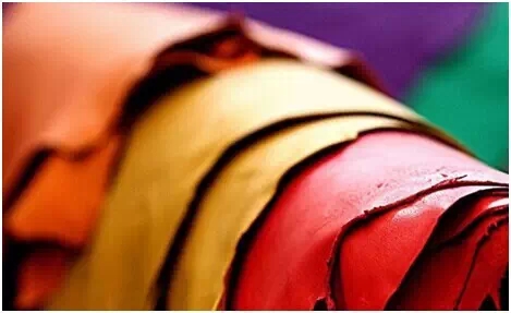 經(jīng)過眾多工序篩選好的皮革通過各種處理染色后,被剪裁成數(shù)十張和手袋各部件形狀大小相當(dāng)?shù)男K皮子。