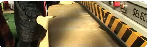 用片皮刀將皮革水平地片開兩層,得到頭層(外層)和二層(里層)