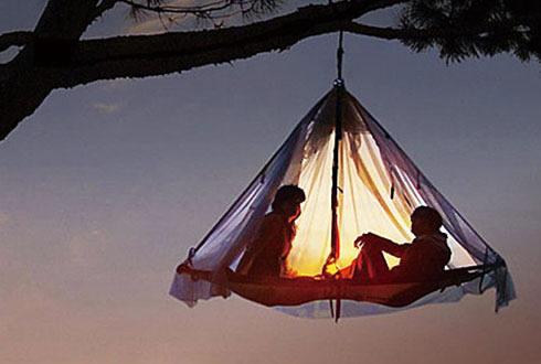 看看這款帳篷,給人一種懸浮在空中的錯覺。該帳篷通過高強(qiáng)度的繩索吊在四周的樹桿上,乍一看起來像吊床,既安全又保證了隱私。此外,這款帳篷還附加了一個繩梯,這樣的話你在晚上仍然可以順暢地爬進(jìn)帳篷。